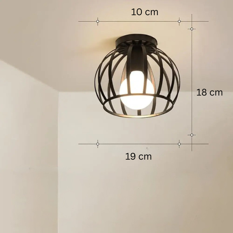 Diese Metall-Käfig-Deckenleuchte vereint ein markantes geometrisches Design mit funktionaler Beleuchtung im industriellen Stil. Der offene Rahmen sorgt für eine gleichmäßige Lichtverteilung und betont zugleich die architektonischen Strukturen von Fluren, Schlafzimmern oder Loft-Interieurs.