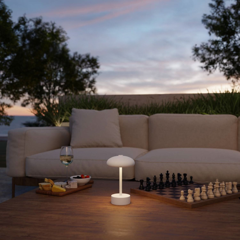 Diese tragbare, pilzförmige Tischleuchte vereint modernes Design mit praktischer Funktionalität und spendet warmes Licht – ideal für den Einsatz im Innen- und Außenbereich. Dank des wiederaufladbaren Akkus und der kompakten Form lässt sie sich flexibel auf Couchtischen, Terrassen oder Nachttischen platzieren und sorgt für eine angenehme Beleuchtung bei entspannten Abenden oder geselligen Runden.