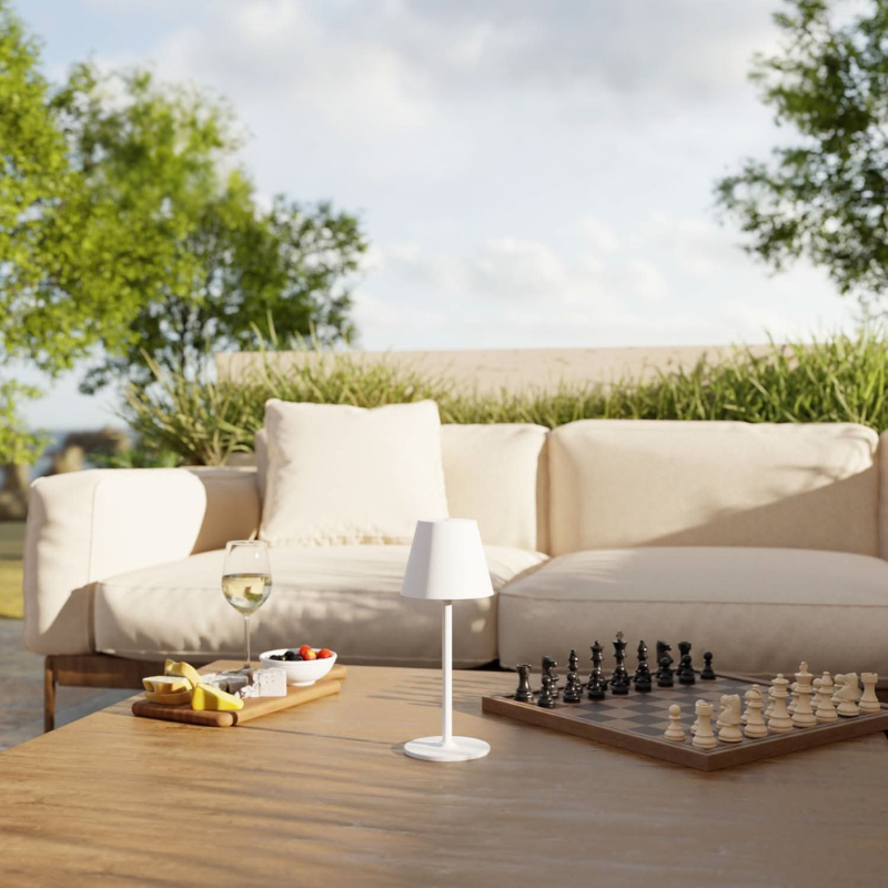 Diese Outdoor-Tischlampe überzeugt durch ihr tragbares Design und den Akkubetrieb, wodurch sie sich ideal für Terrassen, Balkone und Gartenbereiche eignet. Sie spendet warmweißes Licht und schafft so eine stimmungsvolle Atmosphäre für Abendveranstaltungen, während ihr modernes Erscheinungsbild harmonisch in jede Umgebung passt.