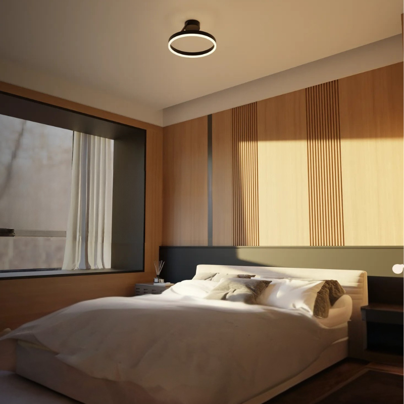 Diese LED-Deckenleuchte mit Ringdesign verfügt über einen eleganten, pulverbeschichteten Aluminiumrahmen, der sich nahtlos in moderne Wohnkonzepte einfügt. Dank einstellbarer Farbtemperatur und dimmbarer Helligkeit bietet sie flexible Beleuchtungsmöglichkeiten für unterschiedliche Bedürfnisse. Mit der integrierten Memory-Funktion speichert die Leuchte die zuletzt gewählte Einstellung – ideal für Wohn-, Ess- oder Schlafzimmer.